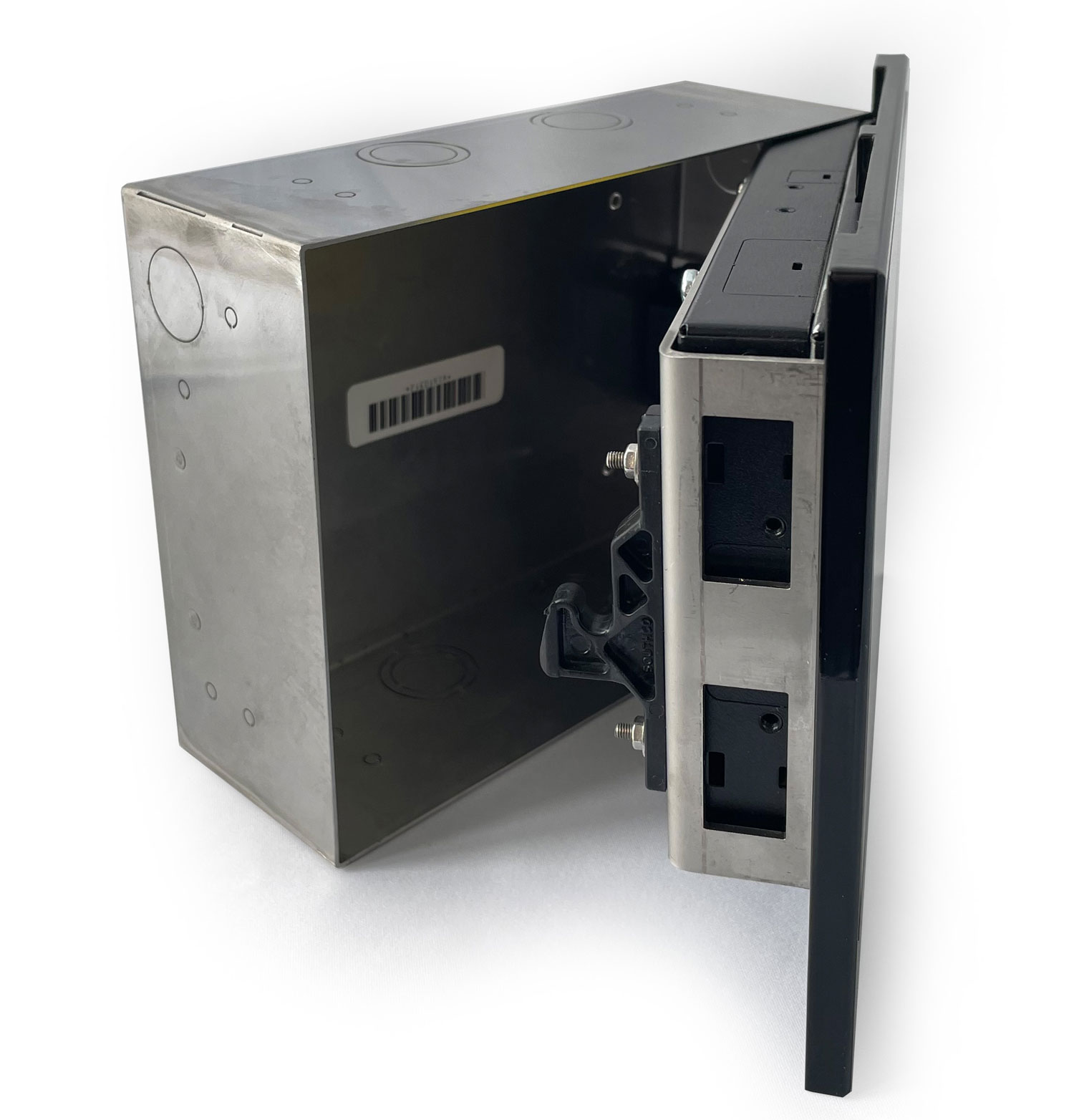Das Set besteht aus einer Wandeinbaubox aus robustem Edelstahl, einer massiven Frontplatte sowie dem notwendigen Befestigungsmaterial. Dank dem cleveren Click-in-Mechanismus kann das Panel schnell und einfach aus der Wand entnommen und wieder eingesetzt werden. Dies erleichtert zum Beispiel Wartungs- oder Reinigungsarbeiten.