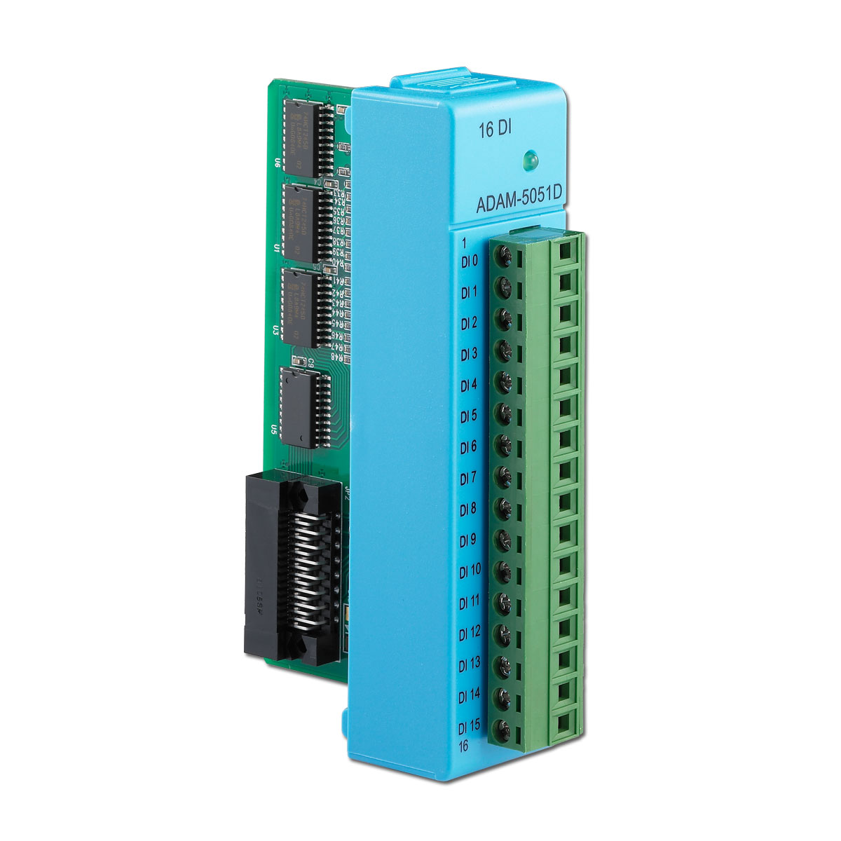 Das ADAM-5051 bietet sechzehn digitale Eingangskanäle. Das ADAM-5000-System kann die digitalen Eingänge des Moduls verwenden, um den Zustand von End- oder Sicherheitsschaltern zu bestimmen oder um digitale Fernsignale zu empfangen.