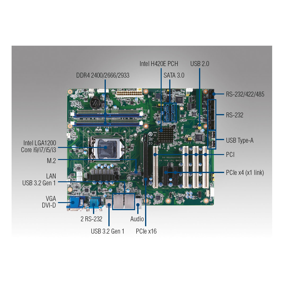 Industrie Mainboard – LGA1200 Intel® Core™ i9/i7/i5/i3 & Pentium®/Celeron® ATX der 10. Generation mit DVI/VGA, DDR4, USB 3.2, M.2, 6x COM