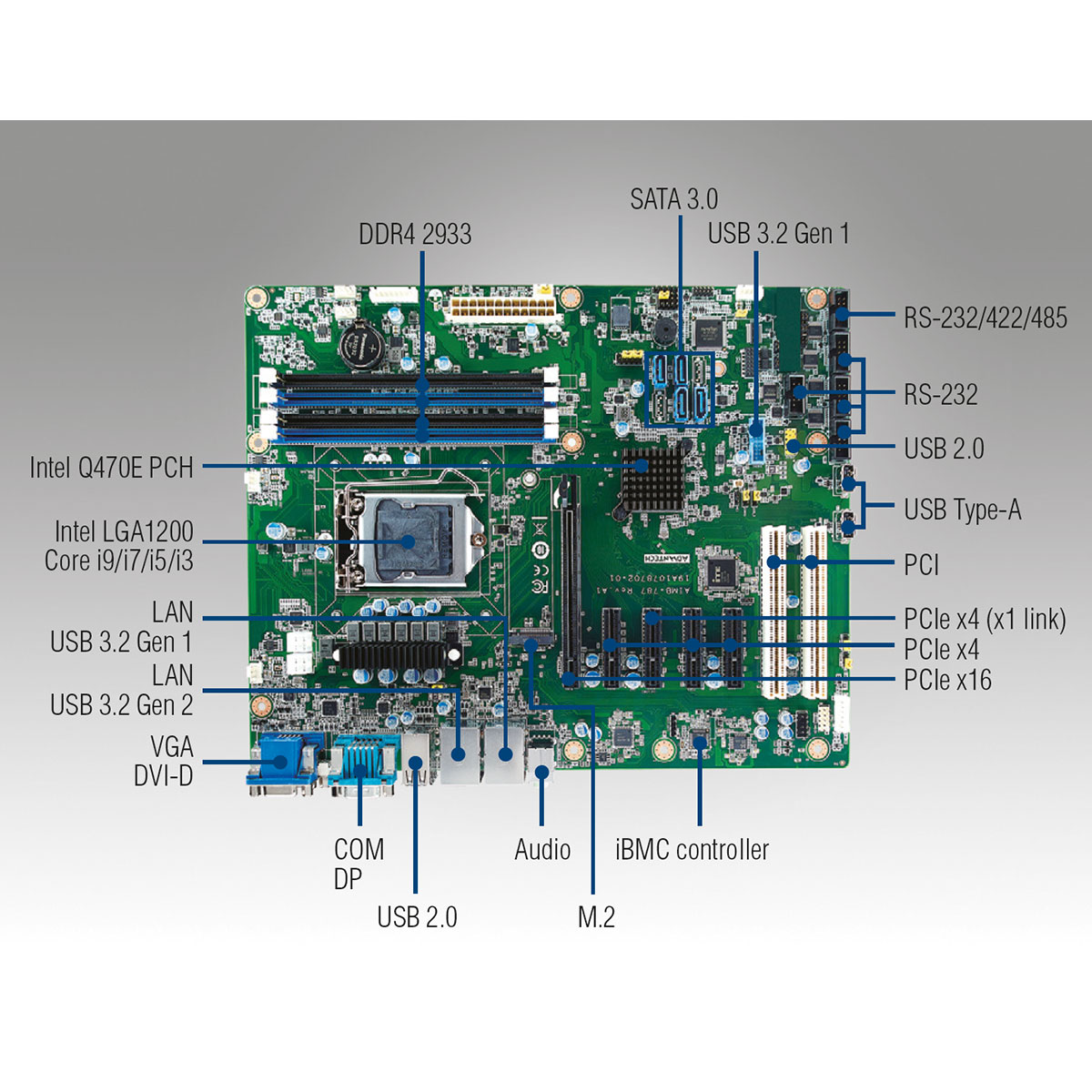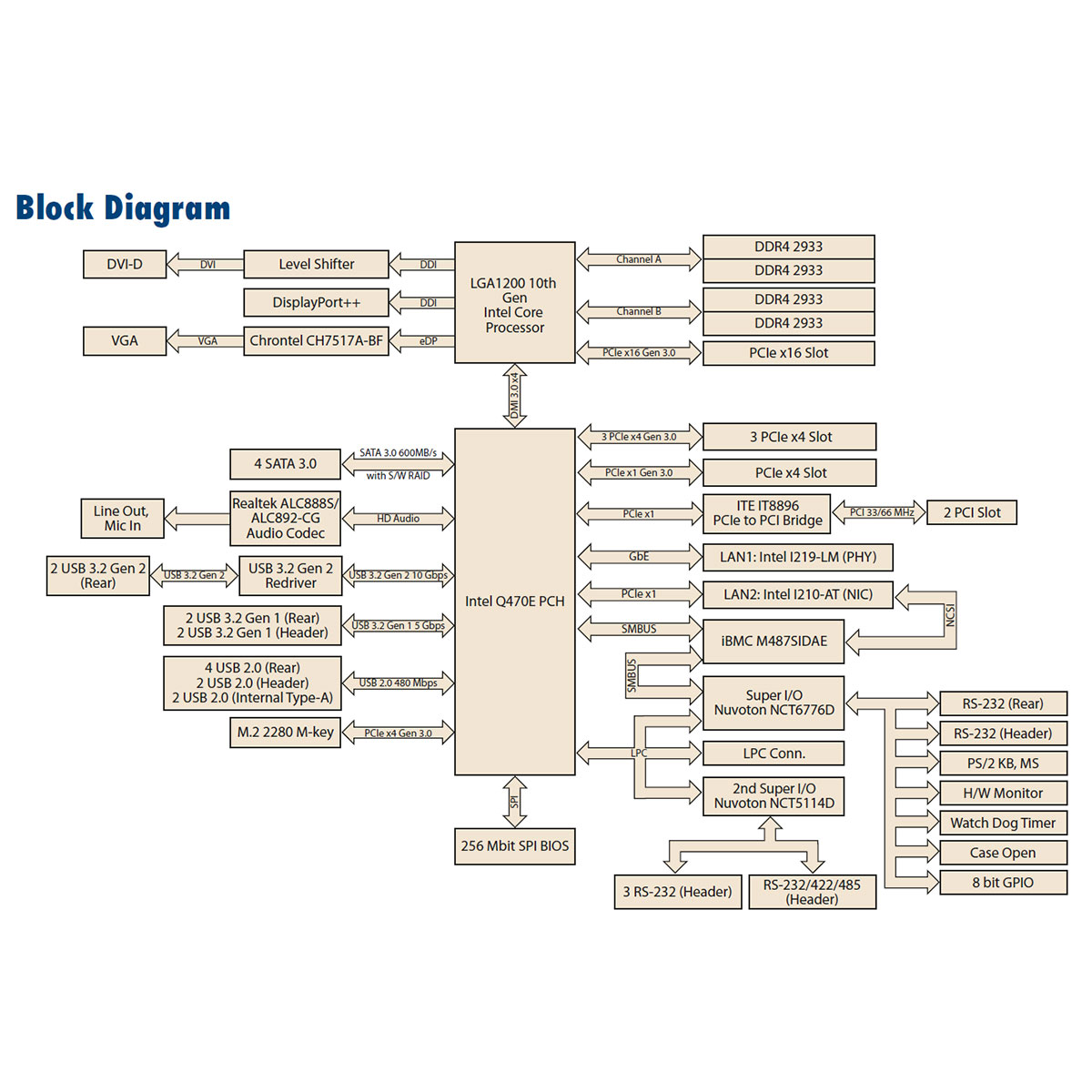 - Intel® Core™ i9/i7/i5/i3 & Pentium®/Celeron® Prozessor der 10. Generation mit Q470E Chipsatz