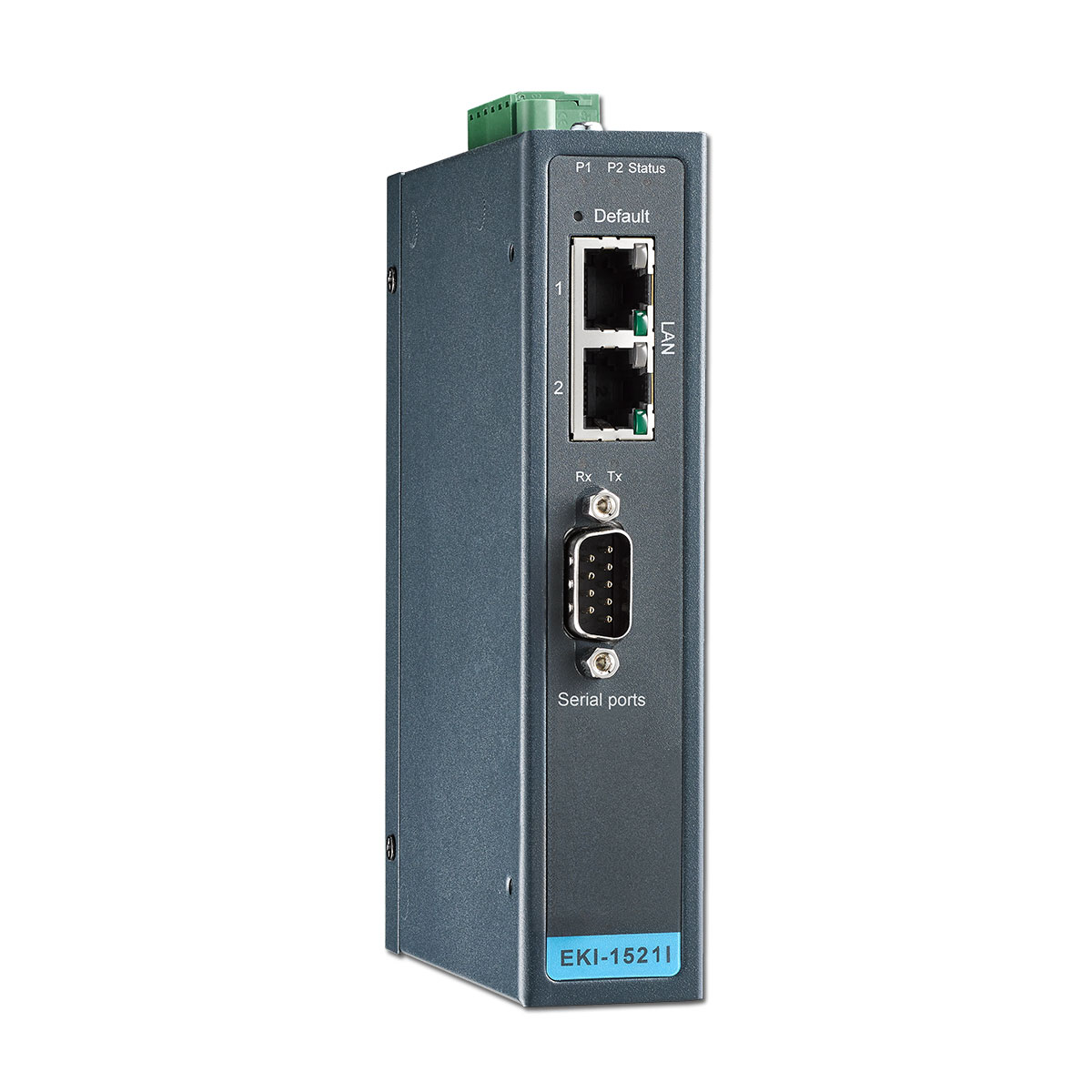 EKI-1521 verfügt über zwei unabhängige Ethernet-Ports und MAC-Adressen, um einen redundanten Netzwerkmechanismus zur Gewährleistung der Zuverlässigkeit des Ethernet-Netzwerks bereitzustellen. Der EKI-1521 ist ein serieller Device Server, der serielle RS-232/422/485-Geräte wie SPS, Zähler, Sensoren und Barcode-Leser mit einem IP-basierten Ethernet-LAN verbindet. Er ermöglichet den Anschluss und die gemeinsame Nutzung eines Ethernet-Netzwerks für nahezu alle Geräte mit seriellen Anschlüssen. Der EKI-1521 bietet verschiedene Funktionen: COM-Port-Umleitung (Virtual COMport), TCP-Server, TCP-Client und UDP-Modus. Im COM-Port-Redirection-Modus werden Standardaufrufe für serielle Operationen transparent auf den EKI-1521 umgeleitet, wodurch die Kompatibilität mit älteren seriellen Geräten gewährleistet und die Abwärtskompatibilität mit vorhandener Software ermöglicht wird. Mit den Modi TCP-Server, TCP-Client und UDP gewährleistet derEKI-1521 die Kompatibilität von Netzwerksoftware, die eine Standard-Netzwerk-API verwendet. Darüber hinaus können Sie serielle Geräte mit anderen Geräten Peer-to-Peer kommunizieren lassen, ohne zwischengeschaltete Host-PCs und Softwareprogrammierung.