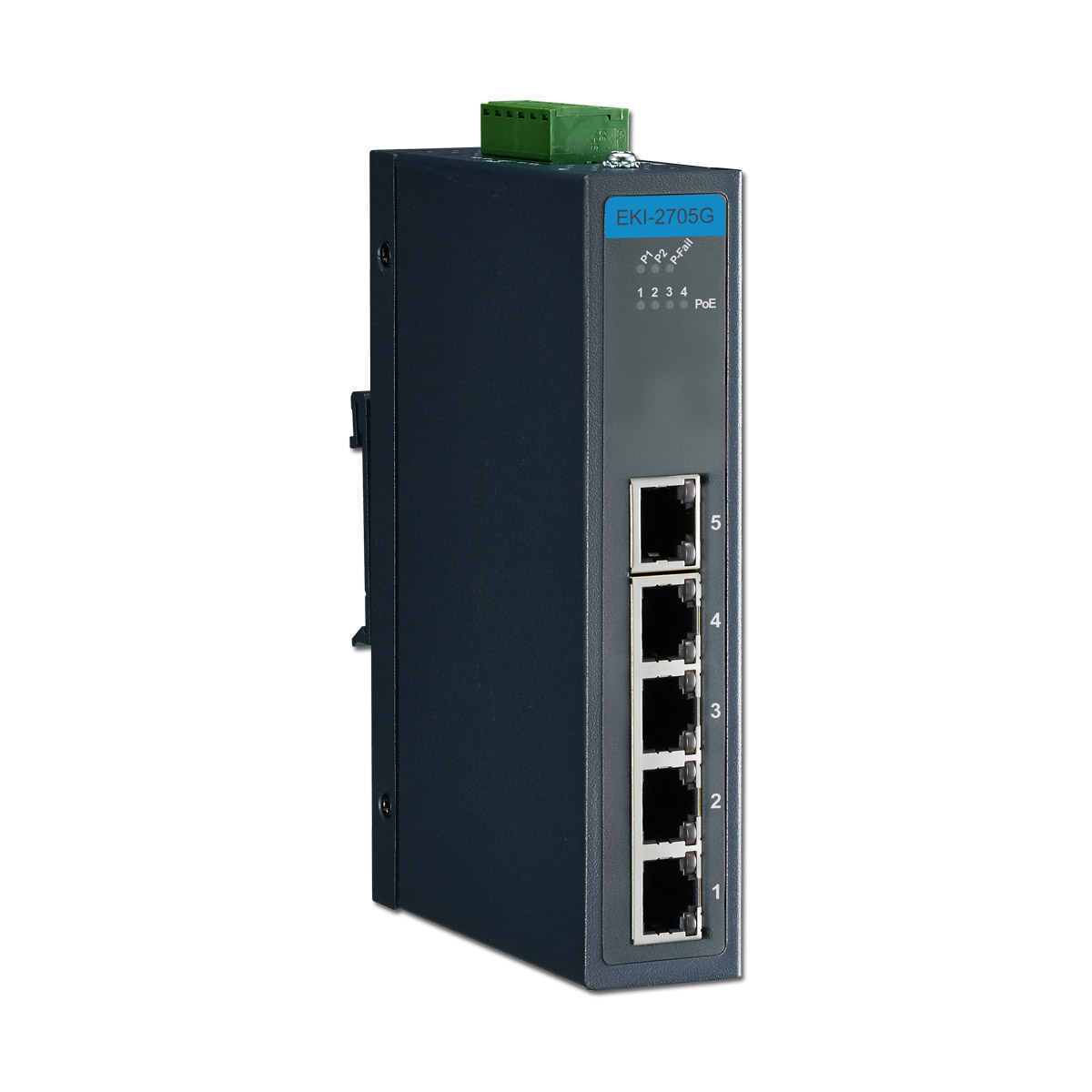 4GE PoE+1GE, Unmanaged Ethernet Switch, IEEE802.3af/at, 24~48VDC, -40~75°C