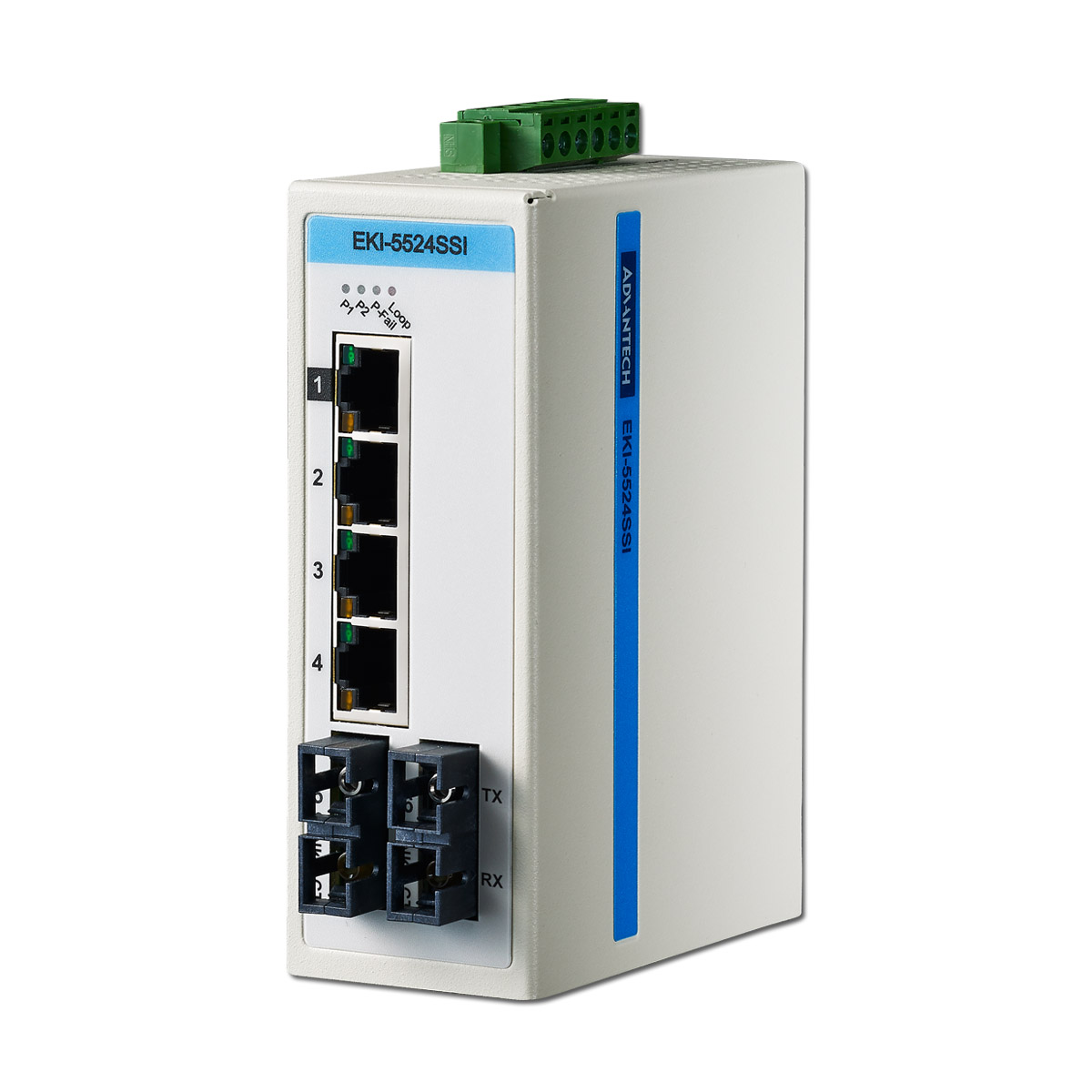 Der EKI-5524SS/SSI/SS-ST/SSI-ST ist der weltweit ersten Konvergenz-Switches für die Prozesssteuerung und das IT-Netzwerkmanagement. Diese Serie nutzt Modbus/TCP für die Kommunikation mit der SCADA-Software und SNMP für die gleichzeitige Kommunikation mit dem NMS (Networking Management System), wodurch eine vollständige Lesekontrolle über die Geräte entweder für die Steuerungstechniker oder für die IT ermöglicht wird. Die Geräte verfügen über Port-basierte QoS für eine deterministische Datenübertragung, die es den prioritären Ports ermöglicht, den über diese Ports eingehenden Datenverkehr zu priorisieren und die weniger unmittelbar benötigten Daten über die übrigen Ports zu verschieben. Der EKI-5524SS/SSI/SS-ST/SSI-ST Switch verwendet die hochwertigsten Komponenten, um den Betrieb bei Temperaturen zwischen -40 und 75°C zu ermöglichen, zusammen mit dem EMS Level 3 Schutz, um elektromagnetische Schnittstellen für industrielle Beständigkeit abzuwehren.