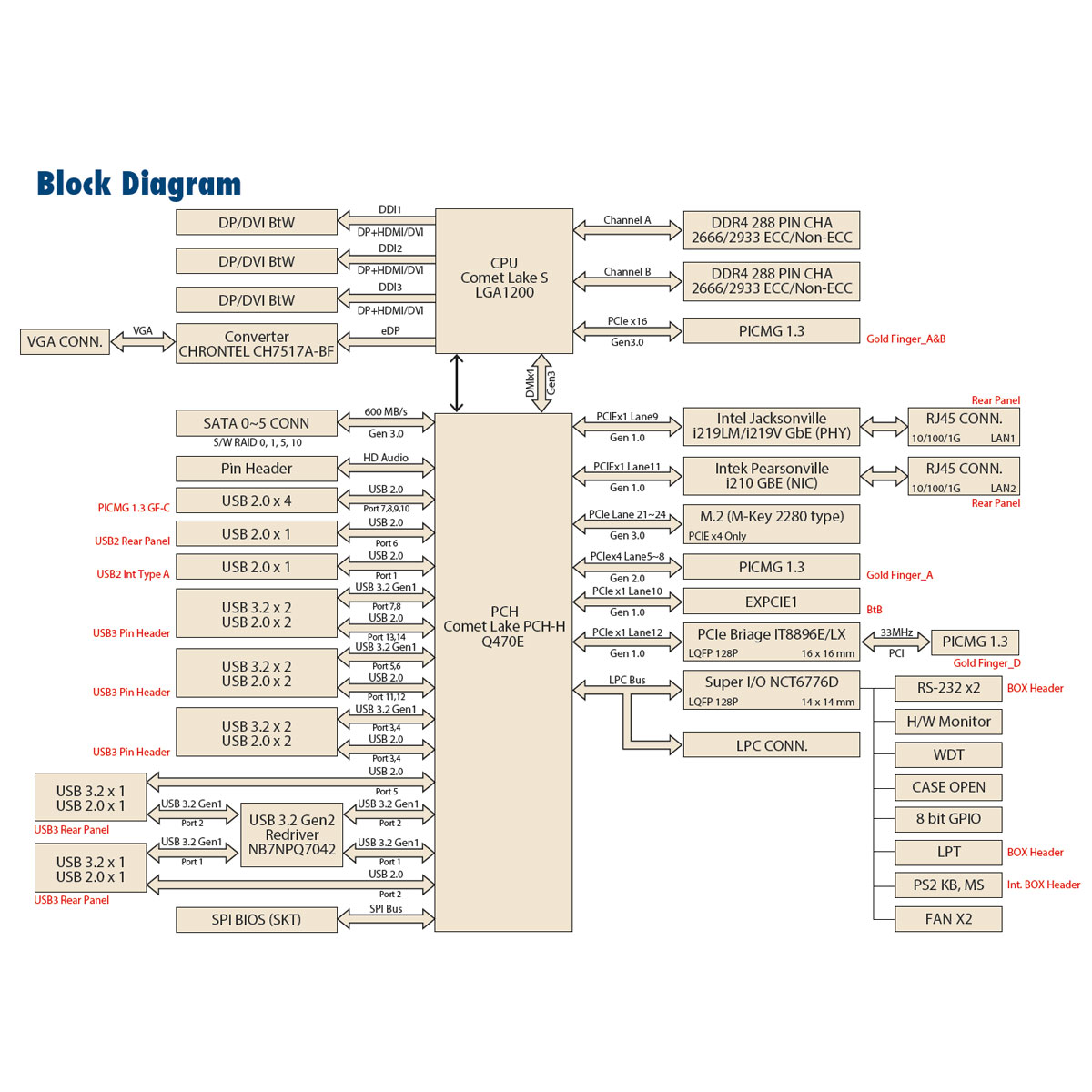 • Intel® Core™ i9/7/i5/i3 LGA1200-Prozessor mit Q470E-Chipsatz