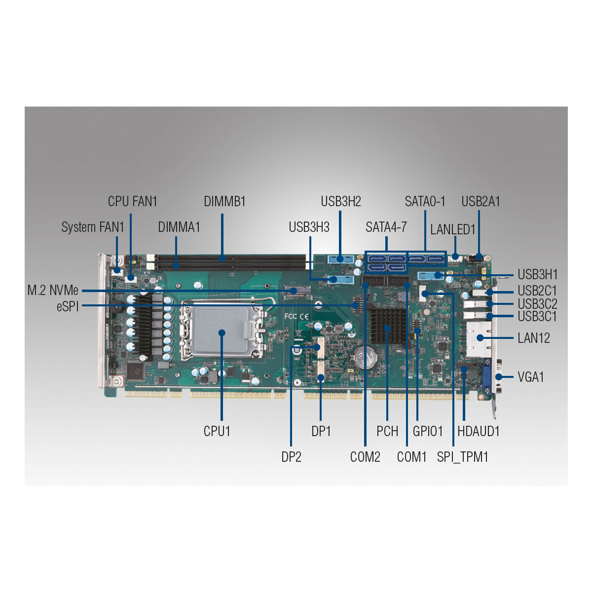 PICMG 1.3 CPU-Board LGA1700 12, 13, 14. Generation Intel® Core™ i9/i7/i5/i3/Pentium® System-Hostboard mit DDR5, SATA 3.0, USB 3.2, M.2, Dual 2,5 GbE und drei Displays