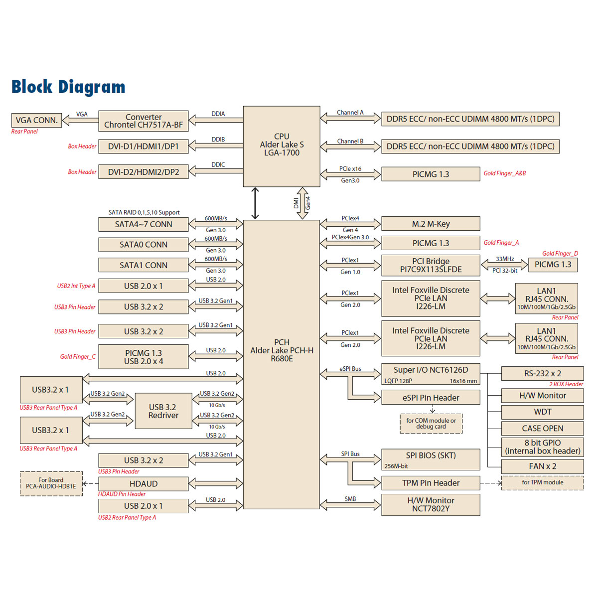 - Intel® Core™ i9/i7/i5/i3/Pentium LGA1700 Prozessor mit R680E Chipsatz