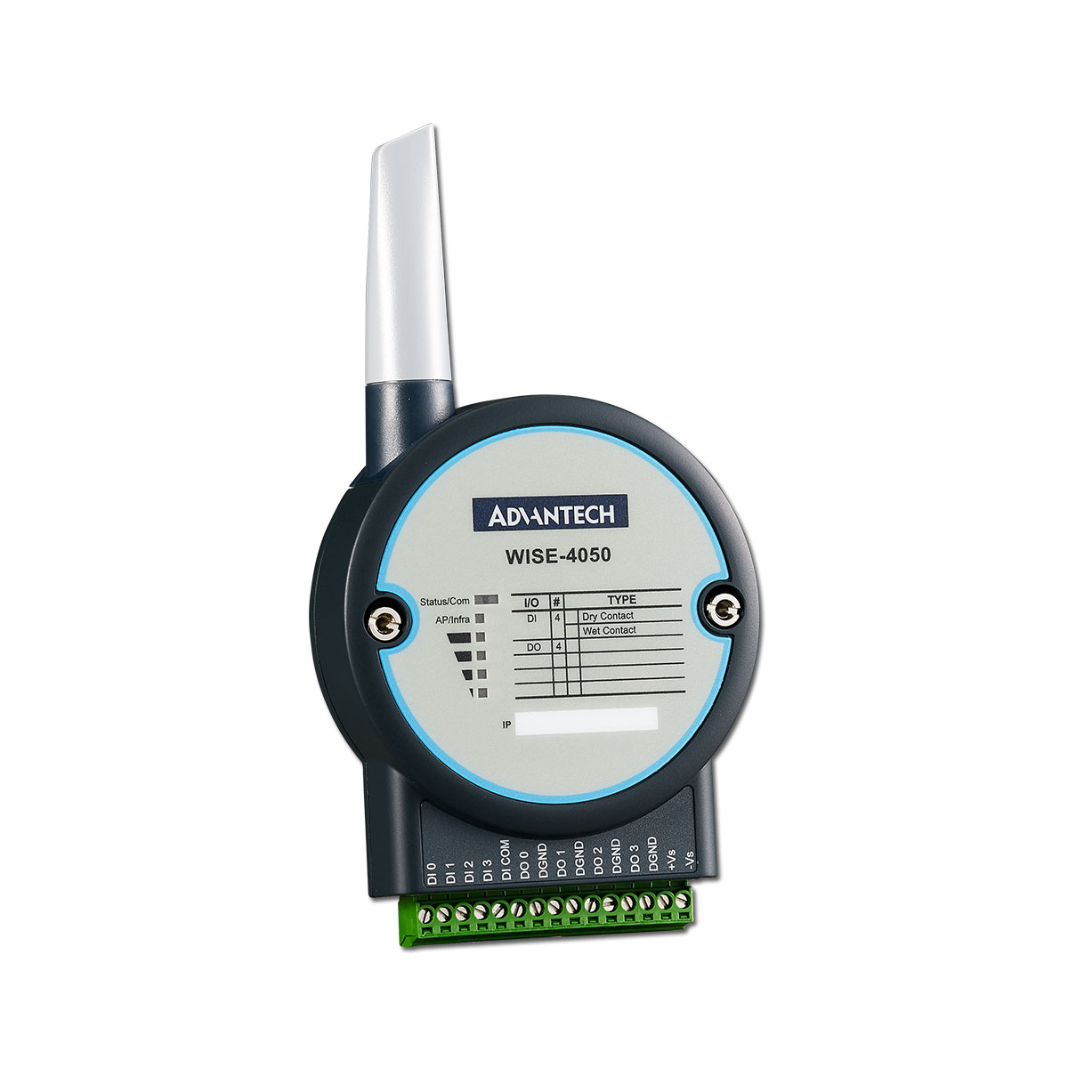 Das WISE-4050, ein drahtloses IoT-I/O-Modul mit 4-Kanal-Digitaleingang und 4-Kanal-Digitalausgang, verfügt über eine integrierte Wi-Fi-Schnittstelle mit AP-Modus und Webkonfiguration, auf die direkt über Mobilgeräte zugegriffen werden kann. Daten können im I/O-Modul protokolliert und dann automatisch in die dateibasierte Cloud übertragen werden.